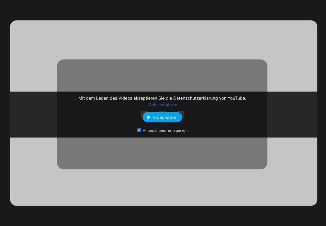 - Vorteile: Es werden keine Daten an YouTube oder andere Drittanbieter übertragen, bevor jemand zustimmt. Die Umsetzung ist DSGVO-konform.