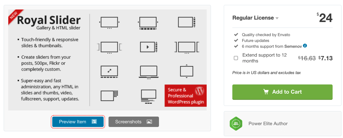 Das RoyalSlider Plugin ist im Gegensatz zu allen anderen hier vorgestellten WordPress Slider Plugins sehr auf die eigentliche Slider- und Galerie-Funktion beschränkt. Es bietet also keine Integrationen von Drittanbietern oder sonst dergleichen. Dennoch zählt das Slider Plugin zu einem der meistverkauften.