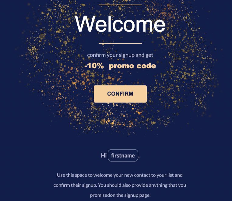 Many online shops also offer their contacts a welcome discount to encourage the recipient to make a purchase as soon as possible.