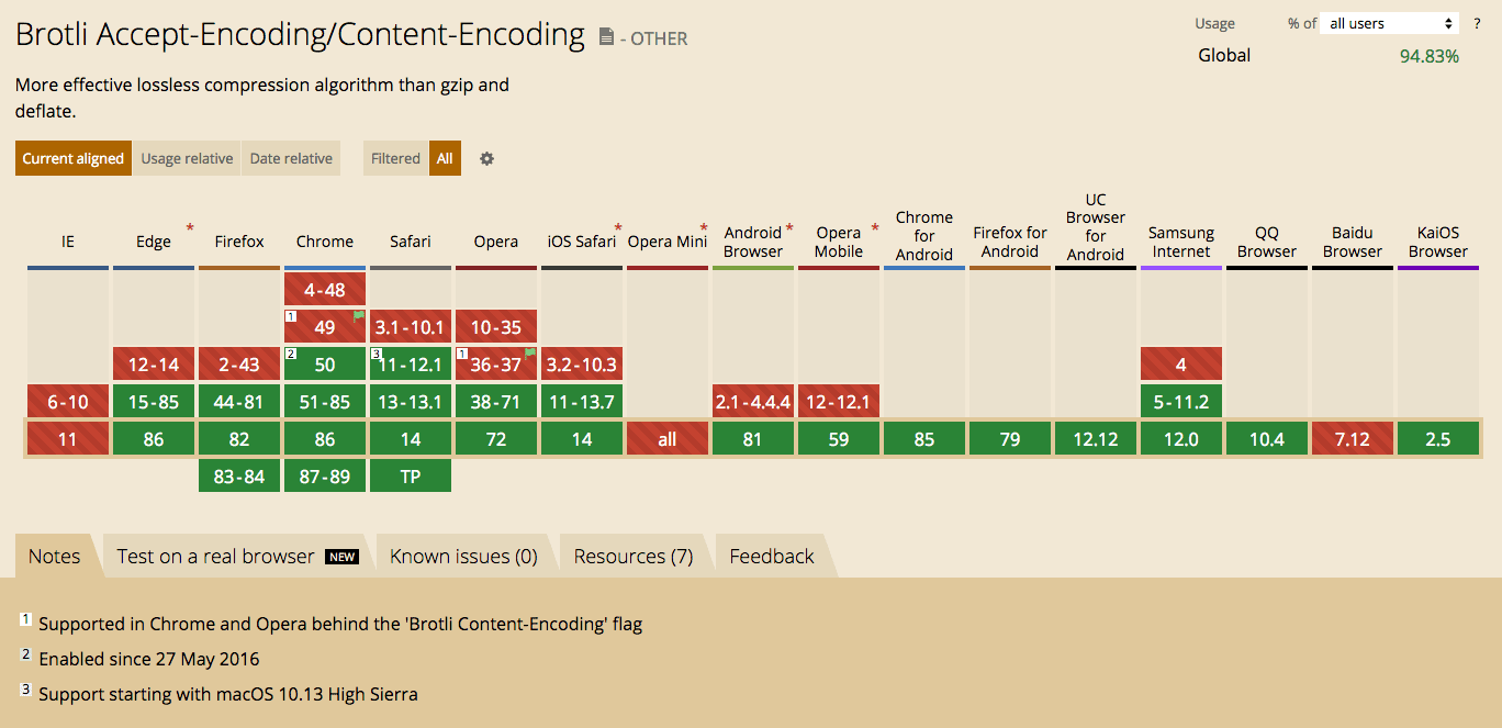Not all browsers support Brotli
