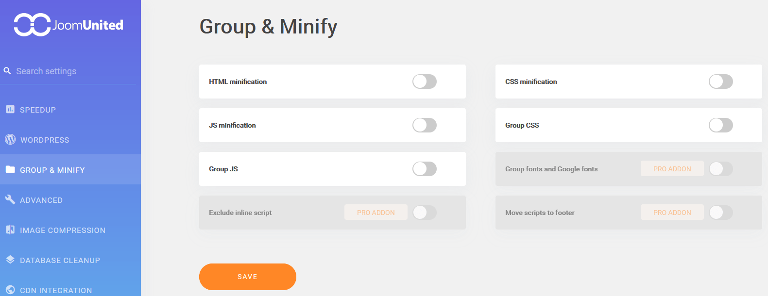The most important functions of the WP Super Minify plugin: